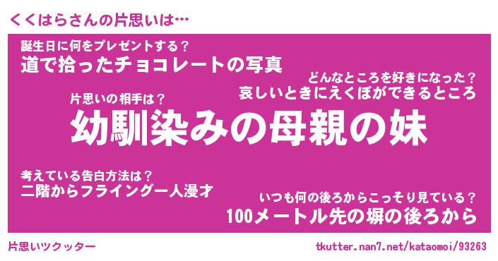 | 男性向けラノベタイトル風あだ名 | 『くくはらの憂鬱』 |