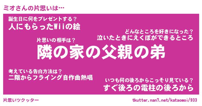 | 胡散臭い通販商品みたいなあだ名 | 『モテモテ間違いなし水晶球…その名も「ミオ」』 |