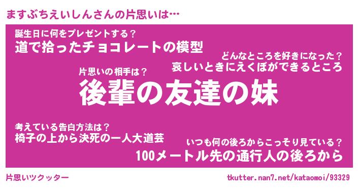 | ヘコむあだ名 | 『ますっふぃ~』『牛乳』『ますを』 |