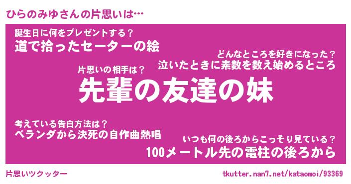 | 胡散臭い通販商品みたいなあだ名 | 『モテモテ間違いなし霊験あらたかなお札…その名も「ひらのみゆ」』 |