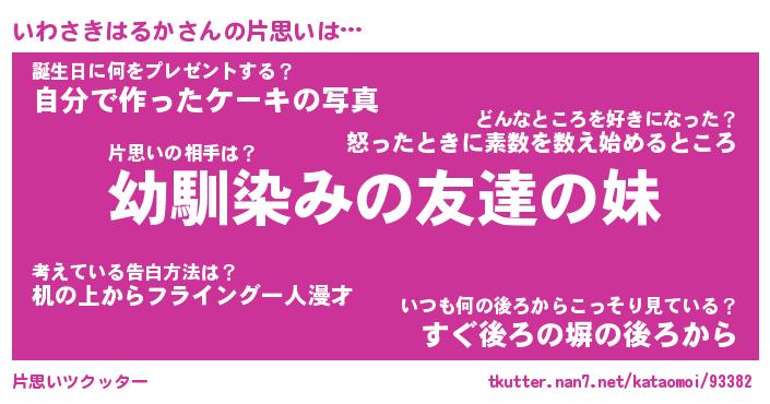 | 胡散臭い通販商品みたいなあだ名 | 『必ず成功する霊験あらたかなお札…その名も「いわさきはるか」』 |