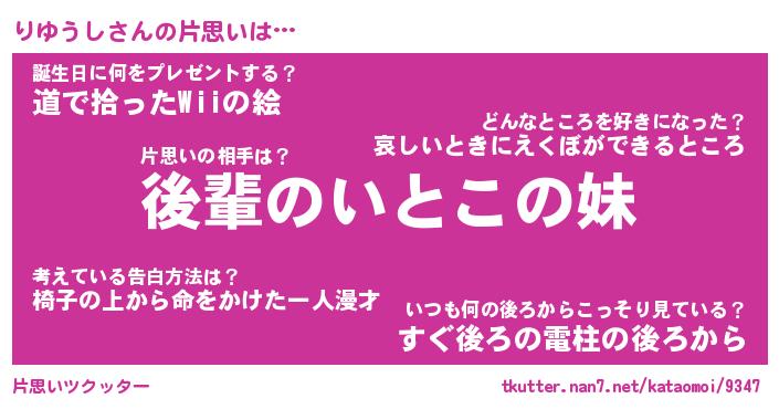 | ヘコむあだ名 | 『りゆにゅー』『豆乳』『りゆを』 |