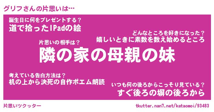 | 男性向けラノベタイトル風あだ名 | 『グリフの憂鬱』 |