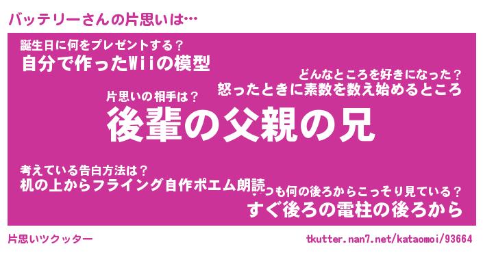 | ヒーロー風カッコイイあだ名 | 『スーパーバッテリー』『暗黒騎士バッ』 |