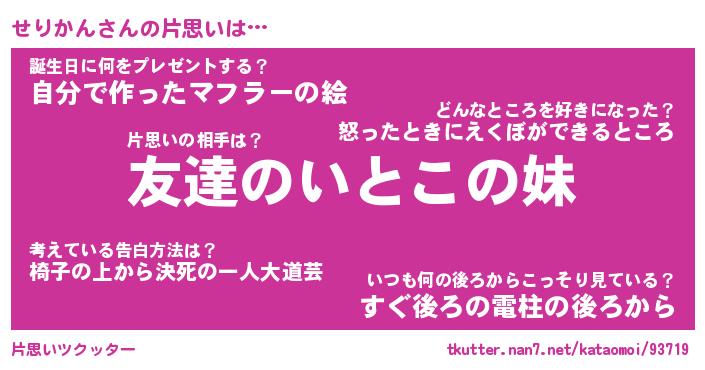 | ヘコむあだ名 | 『せりにゅー』『つくし』『せりを』 |