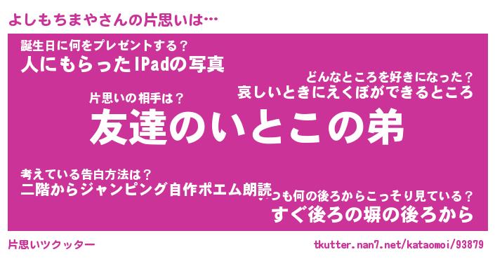 | ヒーロー風カッコイイあだ名 | 『スーパーヨシモチマヤ』『幻影騎士ヨシ』 |