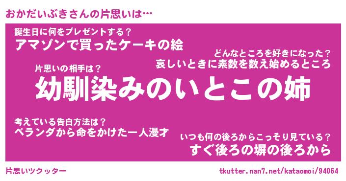 | 男性向けラノベタイトル風あだ名 | 『おかだいぶきの憂鬱』 |