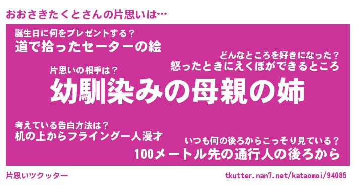 | 男性向けラノベタイトル風あだ名 | 『おおさきたくとの憂鬱』 |