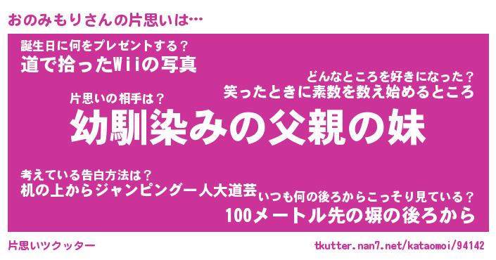 | 男性向けラノベタイトル風あだ名 | 『おのみもりの憂鬱』 |
