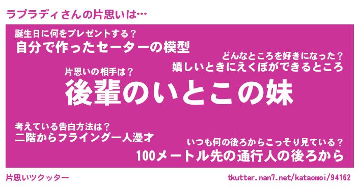 | ヘコむあだ名 | 『ラプにゅー』『つくし』 |