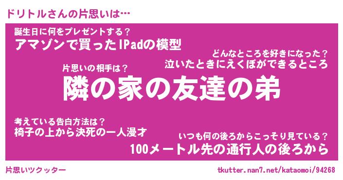 | 意味不明あだ名 | 『ペロリンドリトル』『永久保存ドリトル』 |