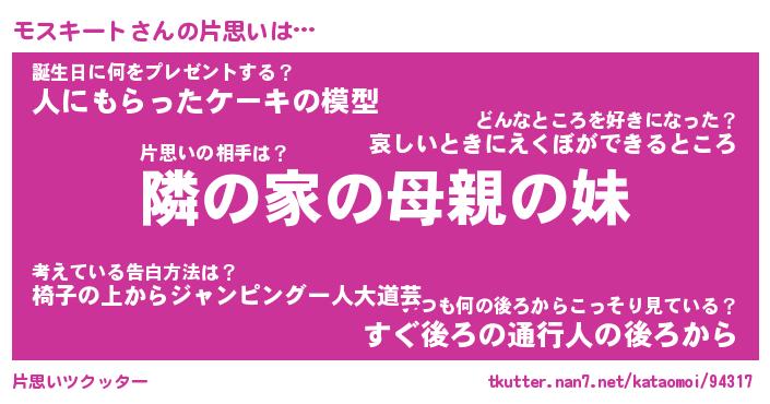 | 料理風あだ名 | 『ほっこり♪モスキートの味噌そぼろ煮』 |