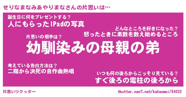 | 胡散臭い通販商品みたいなあだ名 | 『必ず成功するブレスレット…その名も「せりなまなみあやりまな」』 |