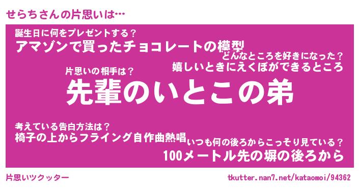 | 意味不明あだ名 | 『ペロリンせらち』『せらちフォーエバー』 |