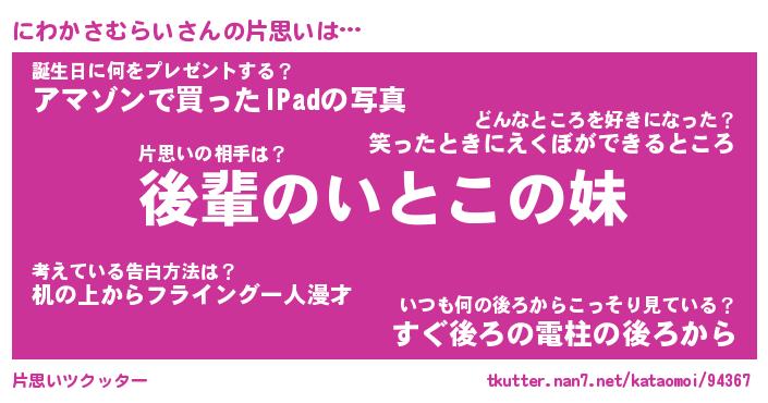 | ピコ太郎風あだ名 | 『ニコ五郎』『ピニ四郎』『ニワ史郎』 |