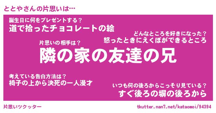 | ヘコむあだ名 | 『ととっふぃ~』『牛乳』『ととを』 |