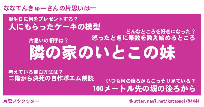 | 胡散臭い通販商品みたいなあだ名 | 『必ず成功する水晶球…その名も「ななてんきゅー」』 |