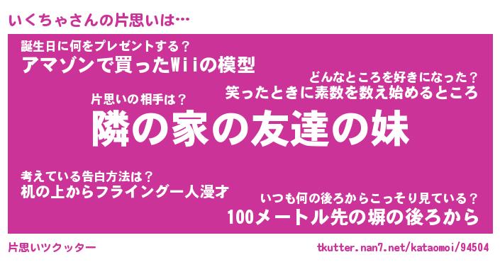 | 胡散臭い通販商品みたいなあだ名 | 『必ず成功する霊験あらたかなお札…その名も「いくちゃ」』 |