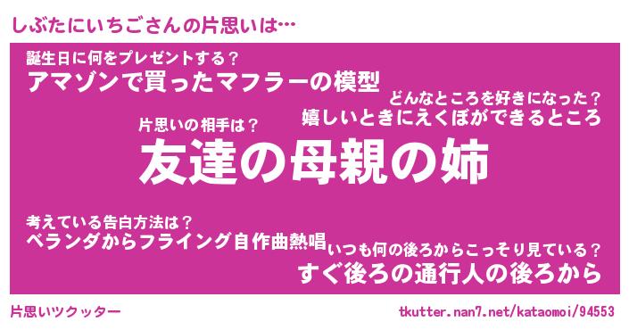 | 胡散臭い通販商品みたいなあだ名 | 『億万長者になれるブレスレット…その名も「しぶたにいちご」』 |