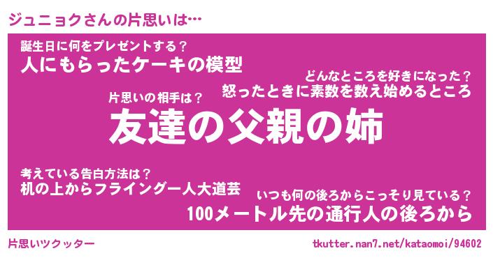 | 胡散臭い通販商品みたいなあだ名 | 『億万長者になれるブレスレット…その名も「ジュニョク」』 |
