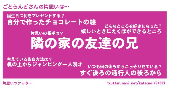| ヘコむあだ名 | 『ごとっふぃ~』『豆乳』『ごとお』 |