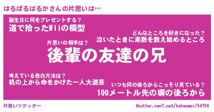 | 胡散臭い通販商品みたいなあだ名 | 『モテモテ間違いなし霊験あらたかなお札…その名も「はるばるはるか」』 |