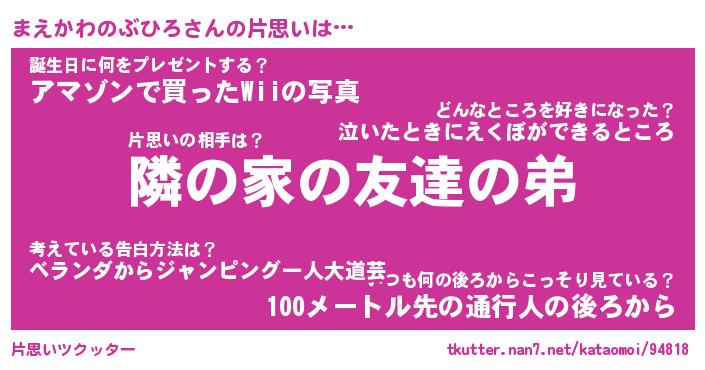 | 胡散臭い通販商品みたいなあだ名 | 『必ず成功する霊験あらたかなお札…その名も「まえかわのぶひろ」』 |