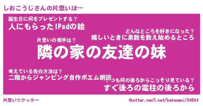 | 伝説のあだ名 | 『伝説のスナイパーしおこうじ』 |