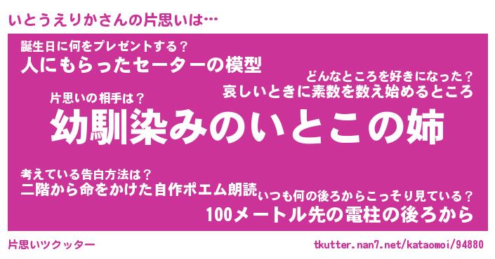 | ツイッター | いとうえりかさんのツイッターID『konnyaku_idle』 |