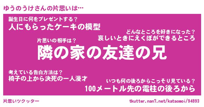 | ヒーロー風カッコイイあだ名 | 『スーパーユウノウケ』『魔戒騎士ユウ』 |