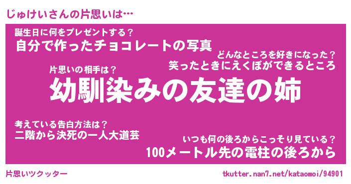 | ポケモン風あだ名 | 『ジュチュウ』『ジュケダネ』 |