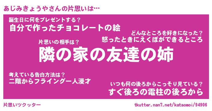 | 胡散臭い通販商品みたいなあだ名 | 『モテモテ間違いなし霊験あらたかなお札…その名も「あじみきょうや」』 |