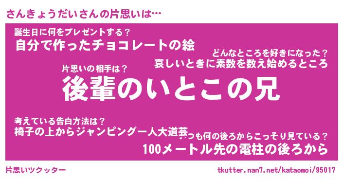 | 胡散臭い通販商品みたいなあだ名 | 『モテモテ間違いなし霊験あらたかなお札…その名も「さんきょうだい」』 |