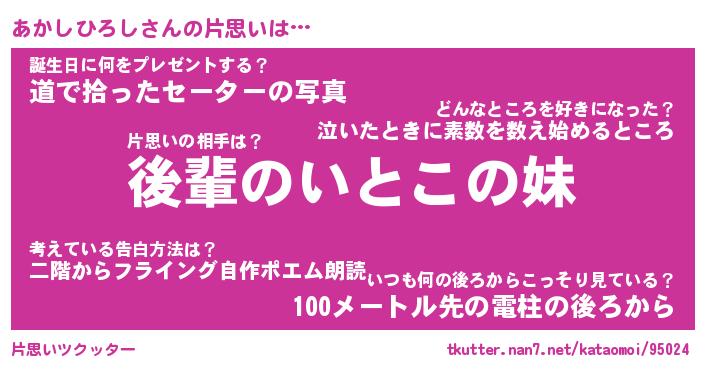 | ヒーロー風カッコイイあだ名 | 『スーパーアカシヒロシ』『魔戒騎士アカ』 |