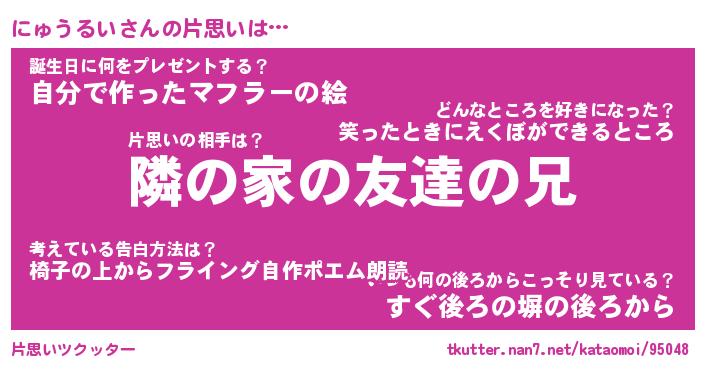 | ヒーロー風カッコイイあだ名 | 『スーパーニュウルイ』『魔戒騎士ニュ』 |