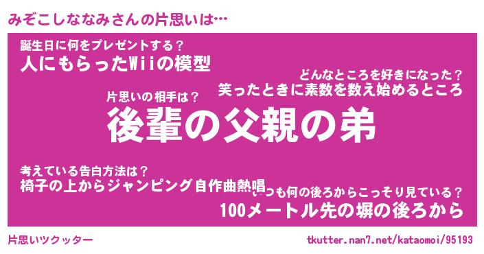| 伝説のあだ名 | 『封印されし傭兵みぞこしななみ』 |