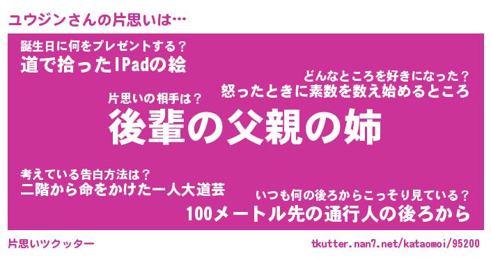 | ヘコむあだ名 | 『ユウふぇ~』『牛乳』『ユウっちょ』 |