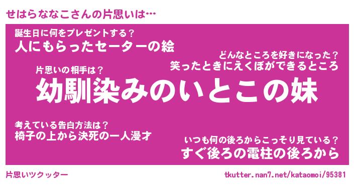 | 男性向けラノベタイトル風あだ名 | 『せはらななこの憂鬱』 |