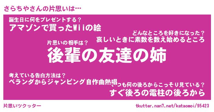 | 意味不明あだ名 | 『ペロリンさらちや』『永久保存さらちや』 |