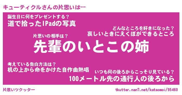 | 女子向けラノベタイトル風あだ名 | 『キューティクル姫と円卓の騎士』 |