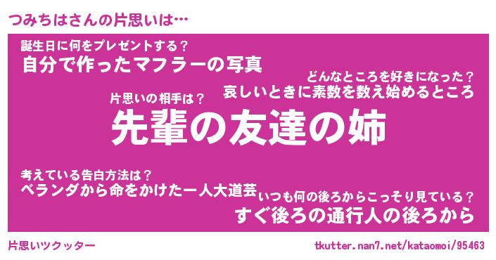 | ヘコむあだ名 | 『つみっふぃ~』『なまこ酢』 |