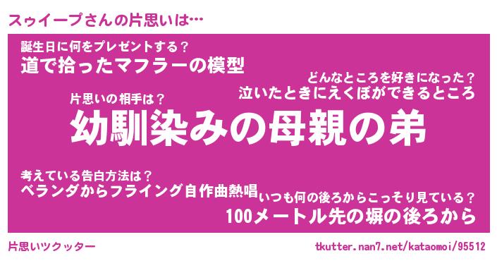 | 男性向けラノベタイトル風あだ名 | 『スゥイープの憂鬱』 |