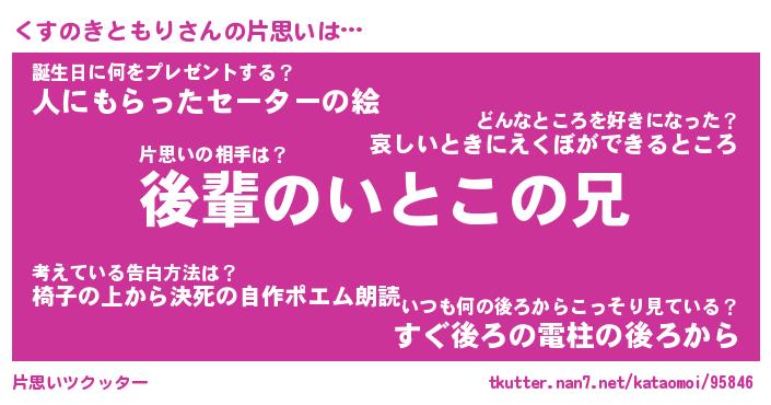 | ヘコむあだ名 | 『くすもー』『つくし』『くすを』 |