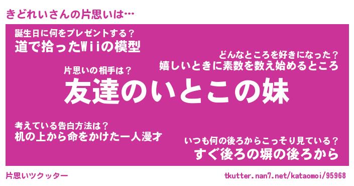 | 胡散臭い通販商品みたいなあだ名 | 『億万長者になれる水晶球…その名も「きどれい」』 |