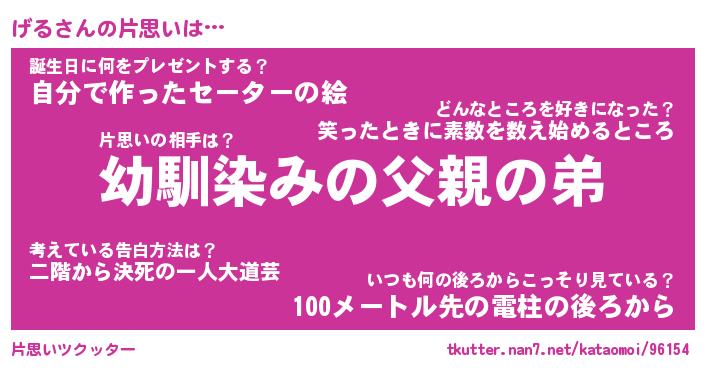 | ヘコむあだ名 | 『げるふぇ~』『つくし』『げるっ子』 |