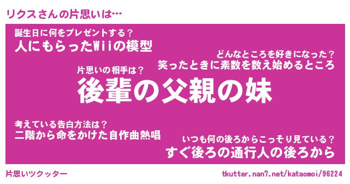 | ファンタジー風あだ名 | 『リクフェル』『エターナルリクスー』 |