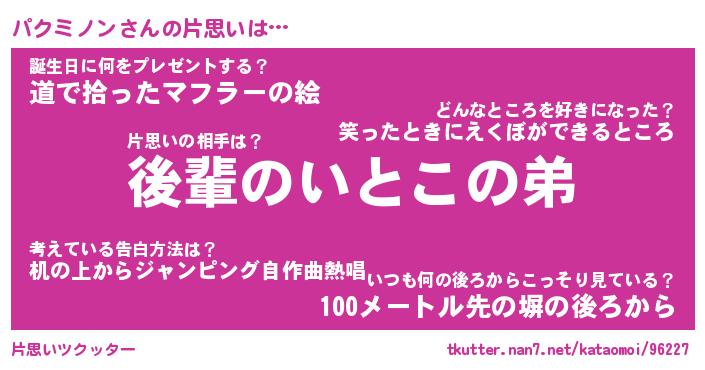 | ヘコむあだ名 | 『パクにゅー』『豆乳』『パクっぺ』 |