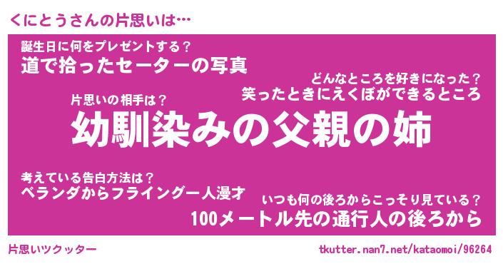 | 男性向けラノベタイトル風あだ名 | 『くにとうの憂鬱』 |