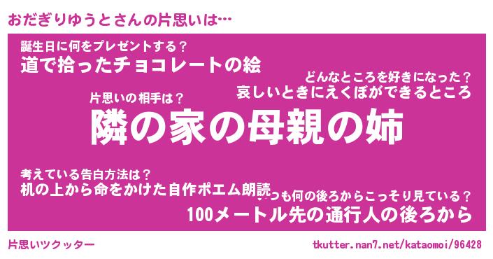 | 女子向けラノベタイトル風あだ名 | 『(仮)おだぎりゆうとのやんごとなき事情』 |