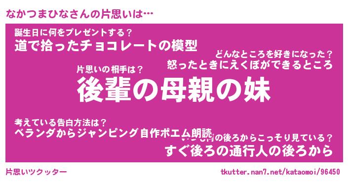 | ヒーロー風カッコイイあだ名 | 『スーパーナカツマヒナ』『銀牙騎士ナカ』 |